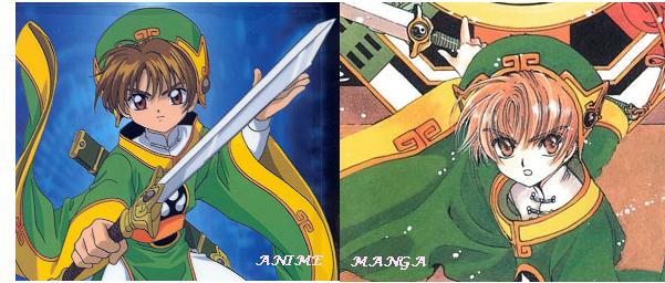 Syaoran Li (meaning Little Wolf), otherwise called Li-kun, Shaolan, Xiao-lang, etc. (NO CERTAINLY NOT SHOWRAN!) is our male protagonist... cancel that. At first, we don't know what he is. He is from Hong Kong and comes from a line of blood, the Li's, who are related to Clow Reed's mother's side. Syaoran is a skilled magician and uses his sword and ward papers, incantation papers, ofuda, whatever, and his lasin board, a compass thingy to find the Clow Cards. He is disciplined in martial arts (drool,) has a strong sense in magic, and is good at math and soccer! (Slobber.) He has gorgeous, glossy dark brown hair (golden tinted in manga, dark chestnut in anime) which hangs into his eyes, and clear, deep, deep amber eyes, under dark level eyebrows~ (OHMYGOSH HE IS SO CUTE!!!) So, he may seem practically perfect, though he is only 10 later on 11 years old (and in the manga ending... ^_^) BUT then comes his personality. (Syao-chan: WHAT ABOUT MY PERSONALITY?)